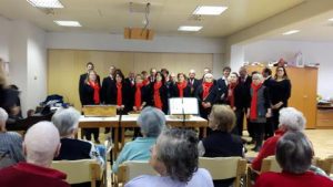 Pevci iz Senožeč nismo neznani gostje oskrbovancev Doma upokojencev v Sežani, saj jih že nekaj let z veseljem razveseljujemo v času po praznikih. Njihova direktorica gospa Rosana Šturm nam namreč vsako leto znova prišepne na uho, da smo na seznamu njihovih prazničnih želja. In ker smo se že večkrat prepičali, da je temu res tako, smo za njih tudi letos, natančneje v nedeljo 8.1.17 popoldan, pripravili uro dolg koncert, ki so ga poleg pevcev pod vodstvom ga. Ade Škamperle obogatili tudi voditeljica Nataša Adam, solistka Zala Hreščak, glasovi in zvoki šolskih otrok ter zvoki pianista Mateja Bariča ter kitarista župnika Pavla Kodelja. Številni poslušalci so nas nagradili z iskrenim aplavzom, mi pa smo jim obljubili, da jih v tem letu še kdaj razveselimo in jim popestrimo njihov vsakdan.